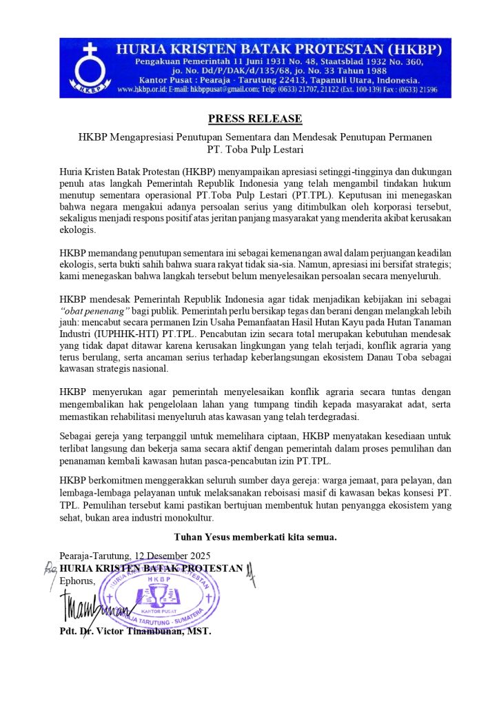 Jakarta Timur (14/12) – Penantian panjang selama 35 tahun yang dilalui jemaat Huria Kristen Batak Protestan (HKBP) Resort Pondok Kelapa akhirnya berbuah manis. Gedung Gereja HKBP Resort Pondok Kelapa, Jakarta Timur, resmi digunakan setelah melalui rangkaian ibadah dan peresmian yang dipimpin langsung Ompu I Ephorus HKBP Pdt. Dr. Victor Tinambunan, MST., Minggu, 14 Desember 2025. […]