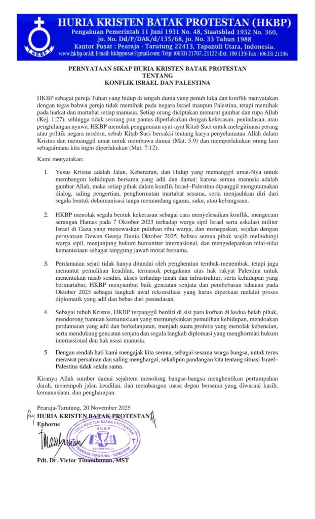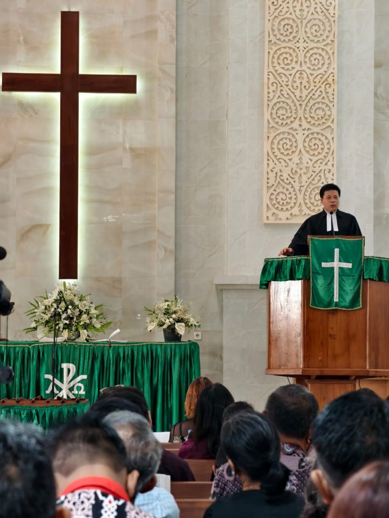 Ephorus Huria Kristen Batak Protestan (HKBP) Pdt. Dr. Victor Tinambunan, MST., memimpin ibadah Minggu Ujung Tahun Gerejawi sekaligus peringatan bagi orang yang telah meninggal dunia di HKBP Denpasar Resort Bali, Minggu (24/11/2025). Ibadah turut dilayani Liturgis Pendeta HKBP Resort Bali Pdt. Darwin Sibarani serta parhalado setempat. Dalam khotbahnya, Ephorus menyapa jemaat dan menyampaikan berkat bagi […]