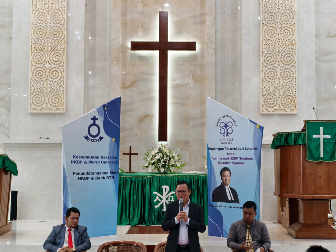 Pada pertemuan ini, Bank BTN turut hadir memberikan sosialisasi mengenai kerja sama yang akan dijalankan bersama HKBP.