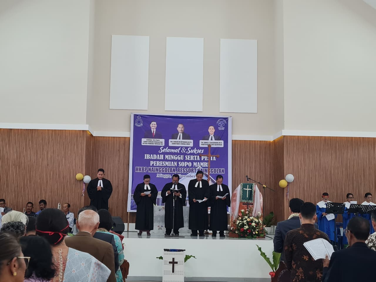 Nainggolan, Samosir (23/11) – Peristiwa bersejarah bagi HKBP Nainggolan Resort Nainggolan yang melaksanakan dua momen penting dalam satu rangkaian kegiatan, yaitu peresmian gedung pelayanan baru: Sopo Mamre, dan pewartaan Firman yang disampaikan oleh Sekretaris Jenderal HKBP, Pdt. Rikson Hutahaean, M.Th. Tepat pada Minggu XXIII Trinitatis, atau yang umum dikenal dengan Minggu Ujung Taon Parhuriaon (Minggu Ujung Tahun Gerejawi). Jemaat dan para tokoh nasional yang hadir bukan hanya menyaksikan sebuah fasilitas pelayanan baru diresmikan, tetapi juga diajak merenungkan kembali arah hidup mereka di hadapan Tuhan melalui khotbah.