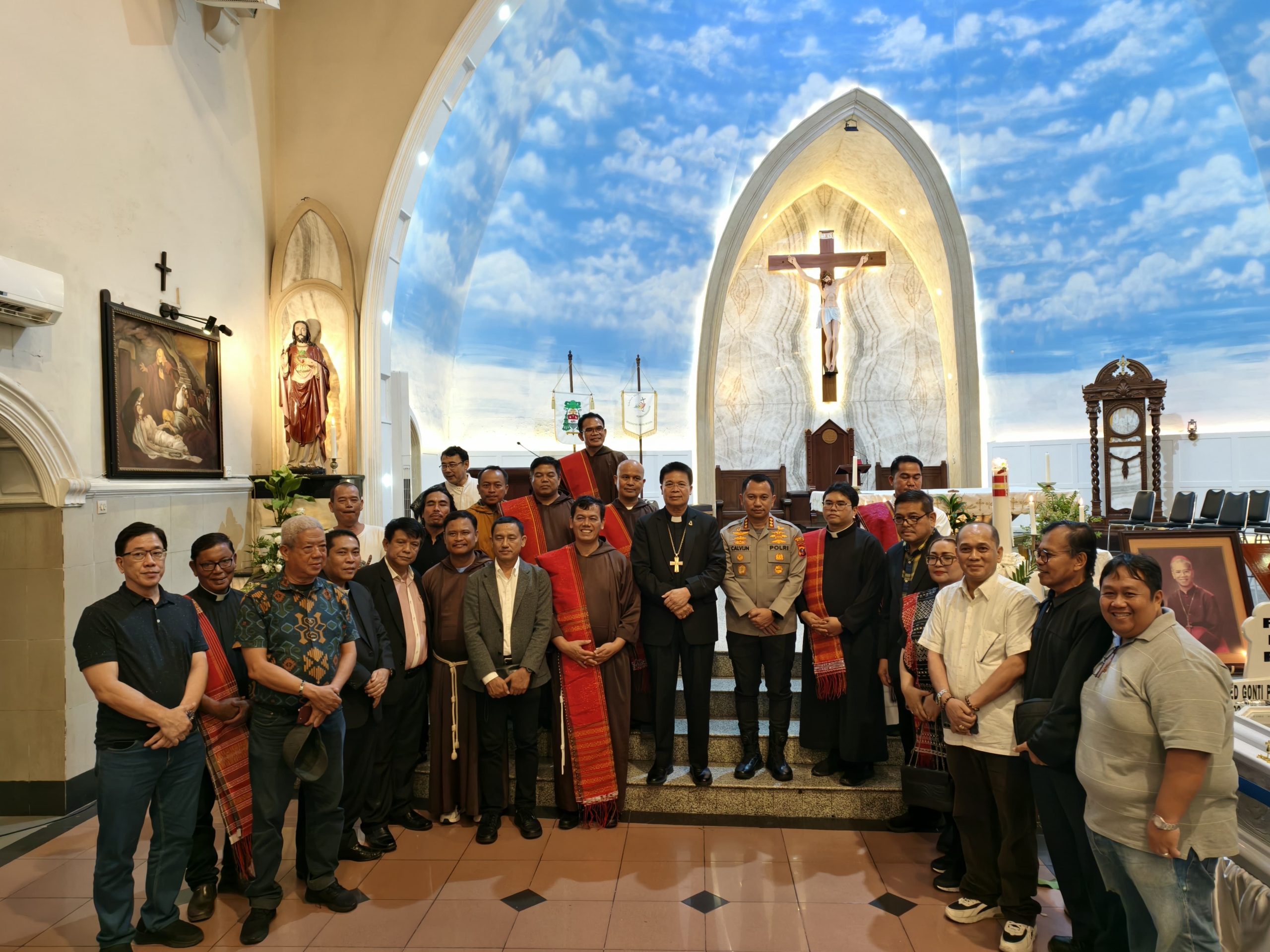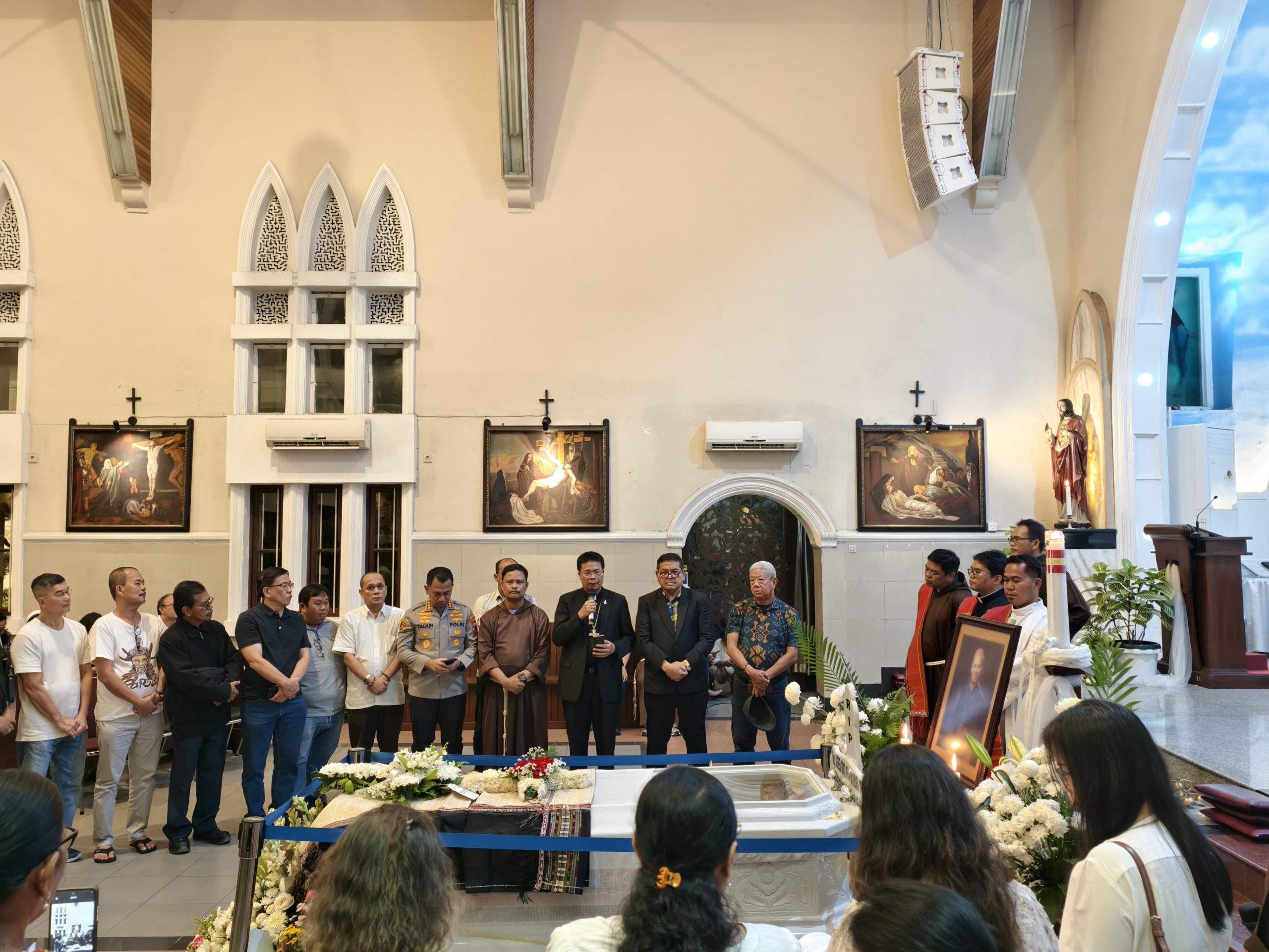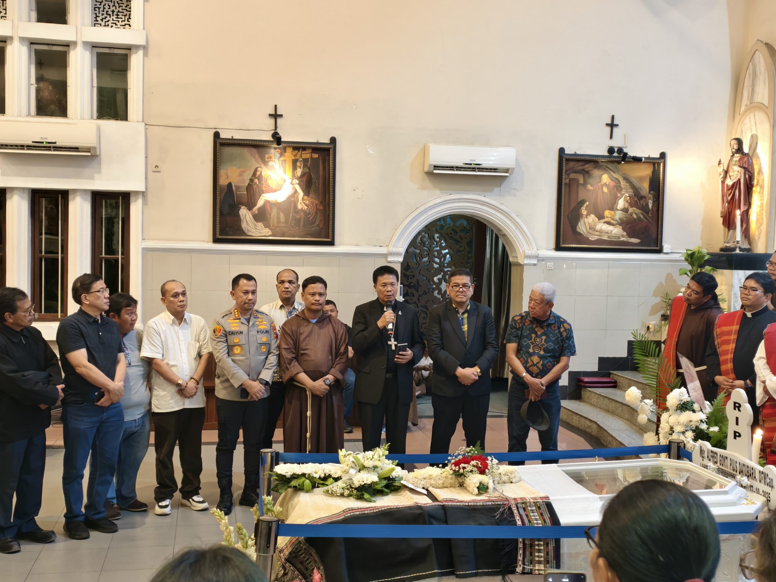 MEDAN (18/10) – Ephorus Huria Kristen Batak Protestan (HKBP), Pdt. Dr. Victor Tinambunan, MST, bersama sejumlah pimpinan gerejadan sahabat lintas denominasi, melayat dan menyampaikan belasungkawa atas wafatnya Uskup Emeritus Mgr. Pius Datubara, OFM Cap, Sabtu (18/10/2025) di Katedral Medan.