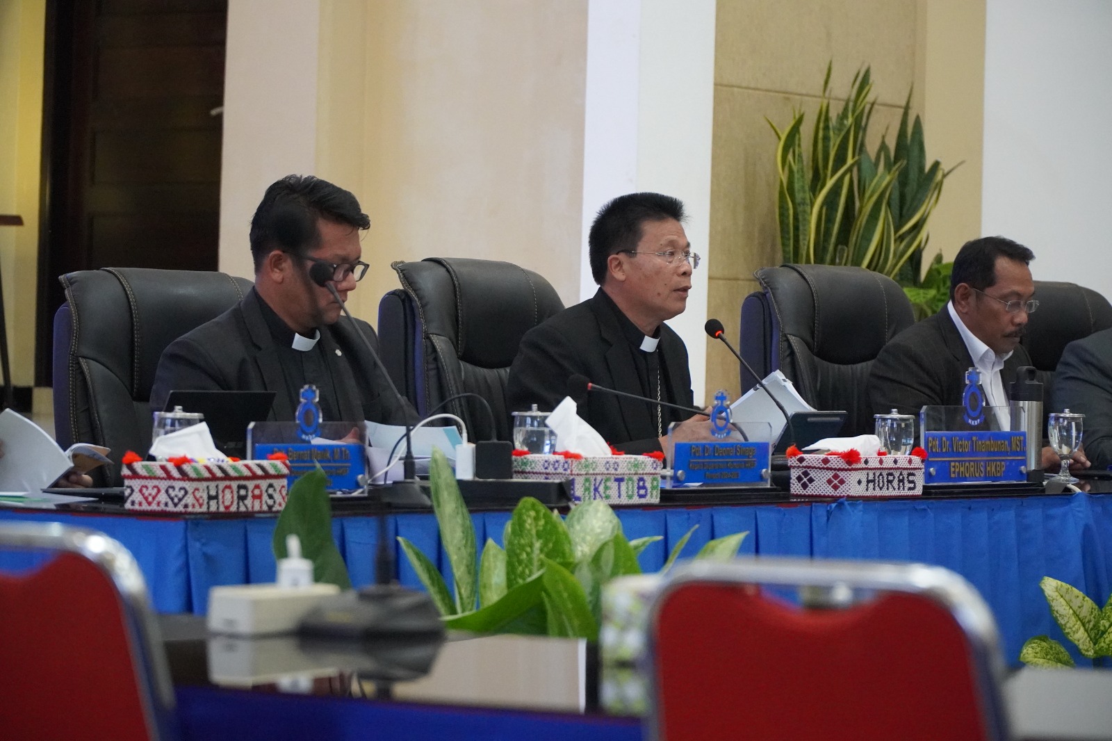 Rapat dibuka secara resmi oleh Ephorus HKBP, Pdt. Dr. Victor Tinambunan, M.ST. Ia menekankan pentingnya memulai seluruh rangkaian rapat dengan Ibadah dan Perjamuan Kudus. “Kami sengaja menempatkan Perjamuan Kudus di awal rapat agar kita semua secara sadar menyerahkan seluruh proses, pemikiran, hingga pengambilan keputusan kepada tuntunan dan anugerah Tuhan,” ujarnya dalam sambutan pembuka.