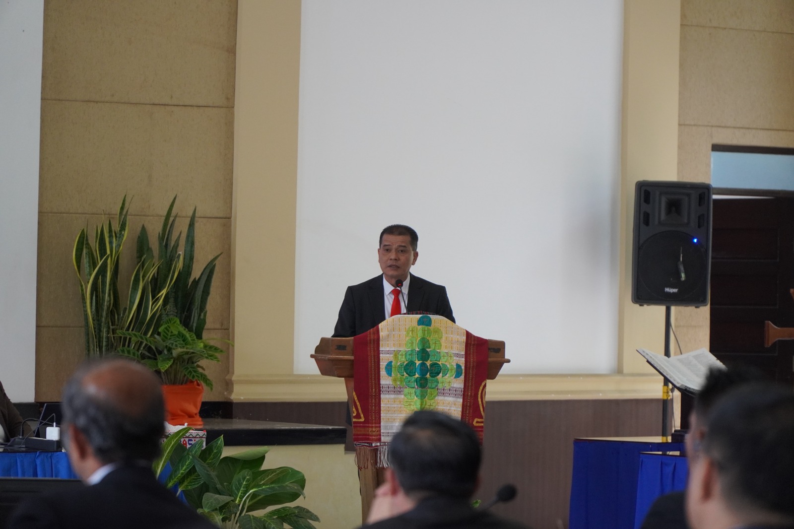 Sebelum memulai persidangan, seluruh peserta mengikuti ibadah yang khidmat. Khotbah yang disampaikan oleh Pdt. Ramses Nadapdap, M.Th. (Praeses Distrik V Sumatera Timur) mengangkat tema sentral dari 1 Tesalonika 5:18 mengenai pentingnya mengucap syukur dalam segala hal.