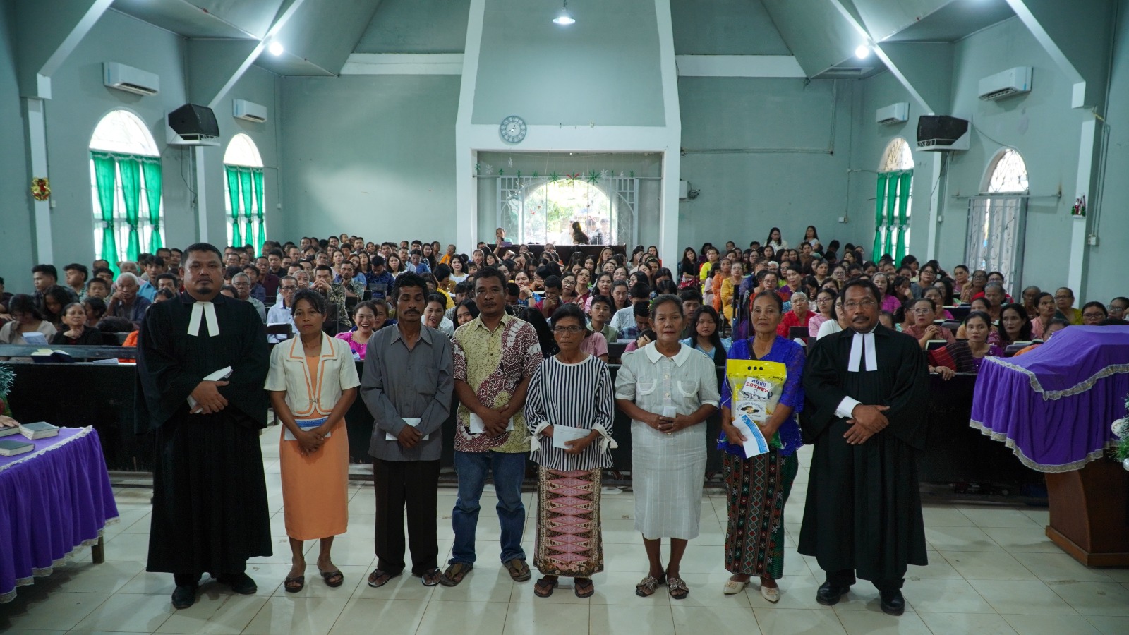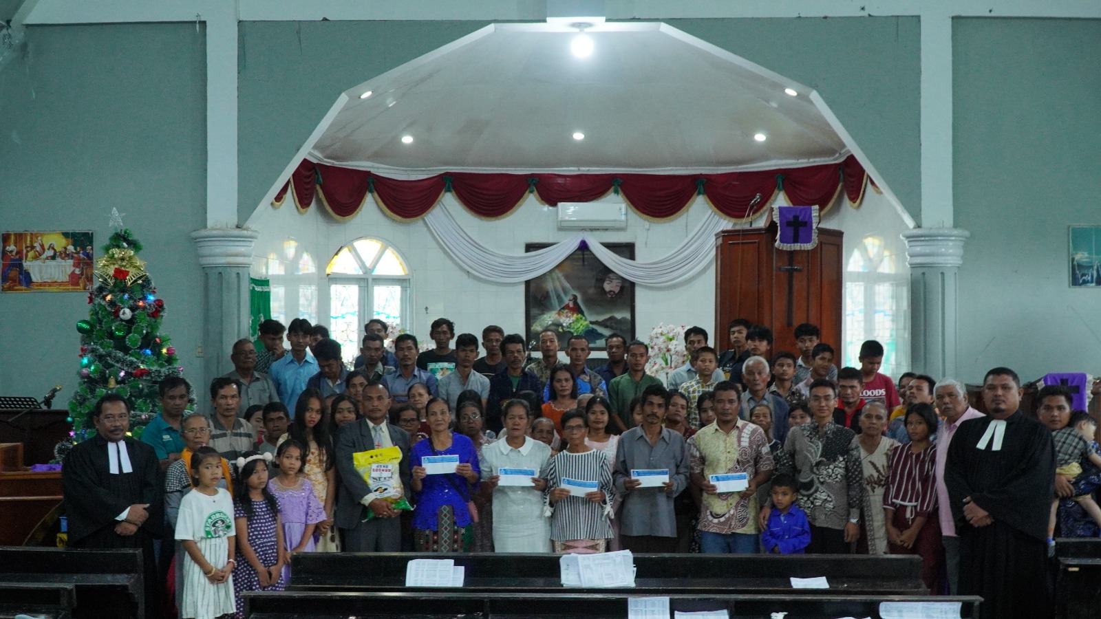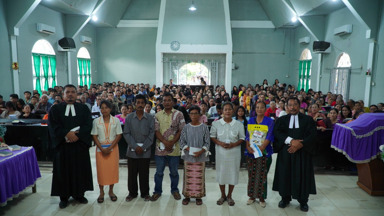 Para pengungsi juga turut hadir mengikuti ibadah meski hanya mengenakan pakaian seadanya. Suasana ibadah menjadi ruang pemulihan batin ketika jemaat yang kehilangan rumah, keluarga, dan harta benda tetap memuji Tuhan bersama-sama. Seusai ibadah, Sekjen HKBP bersama Pdt. Resort Batang Toru berfoto bersama seluruh pengungsi sebagai tanda solidaritas dan penyertaan gereja bagi jemaat. Tim HKBP kemudian memantau langsung kondisi Huta Godang yang sangat memprihatinkan, di mana hamparan kayu-kayu besar berusia puluhan tahun menumpuk dan memperlihatkan besarnya kekuatan banjir yang melanda.