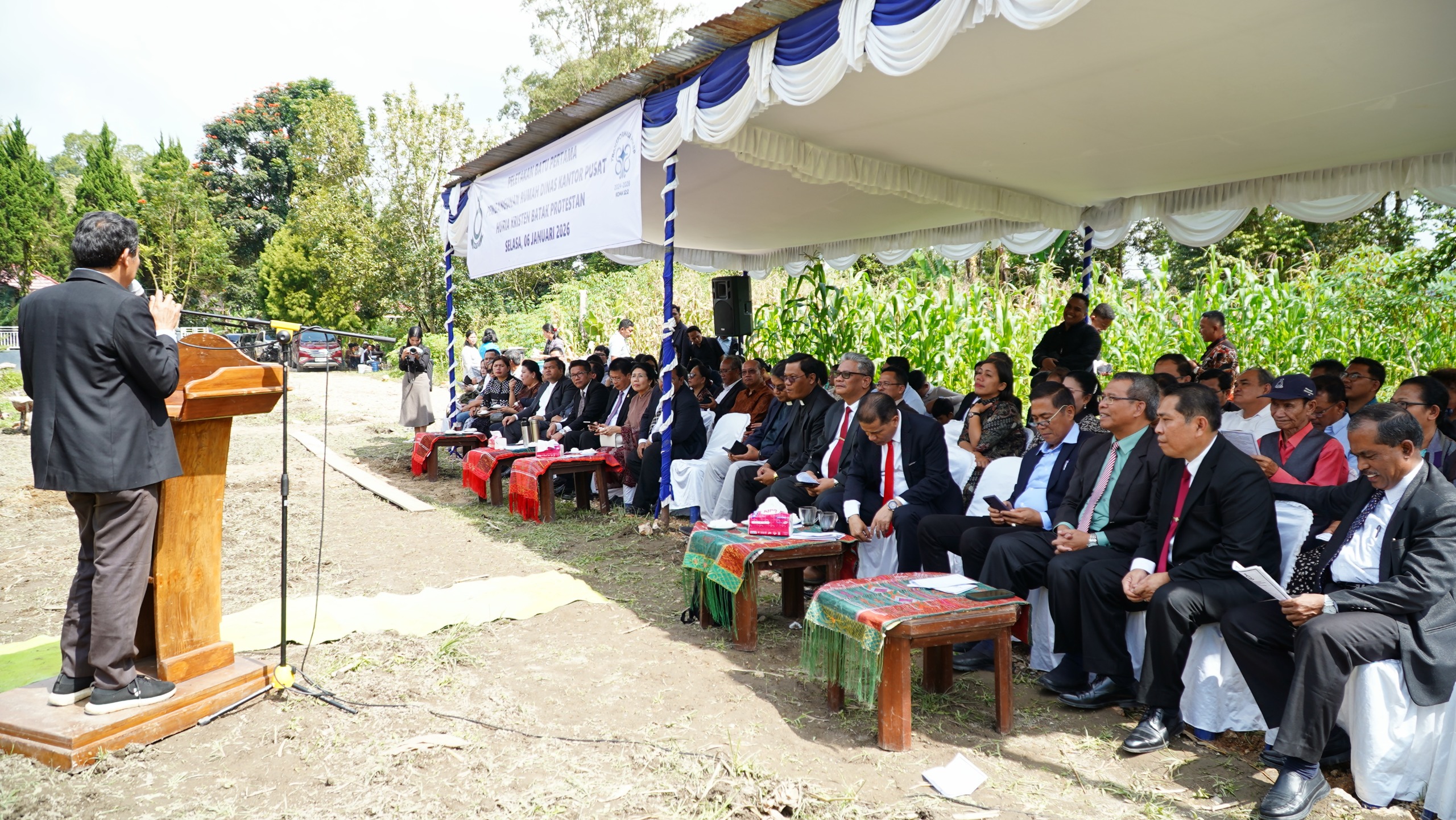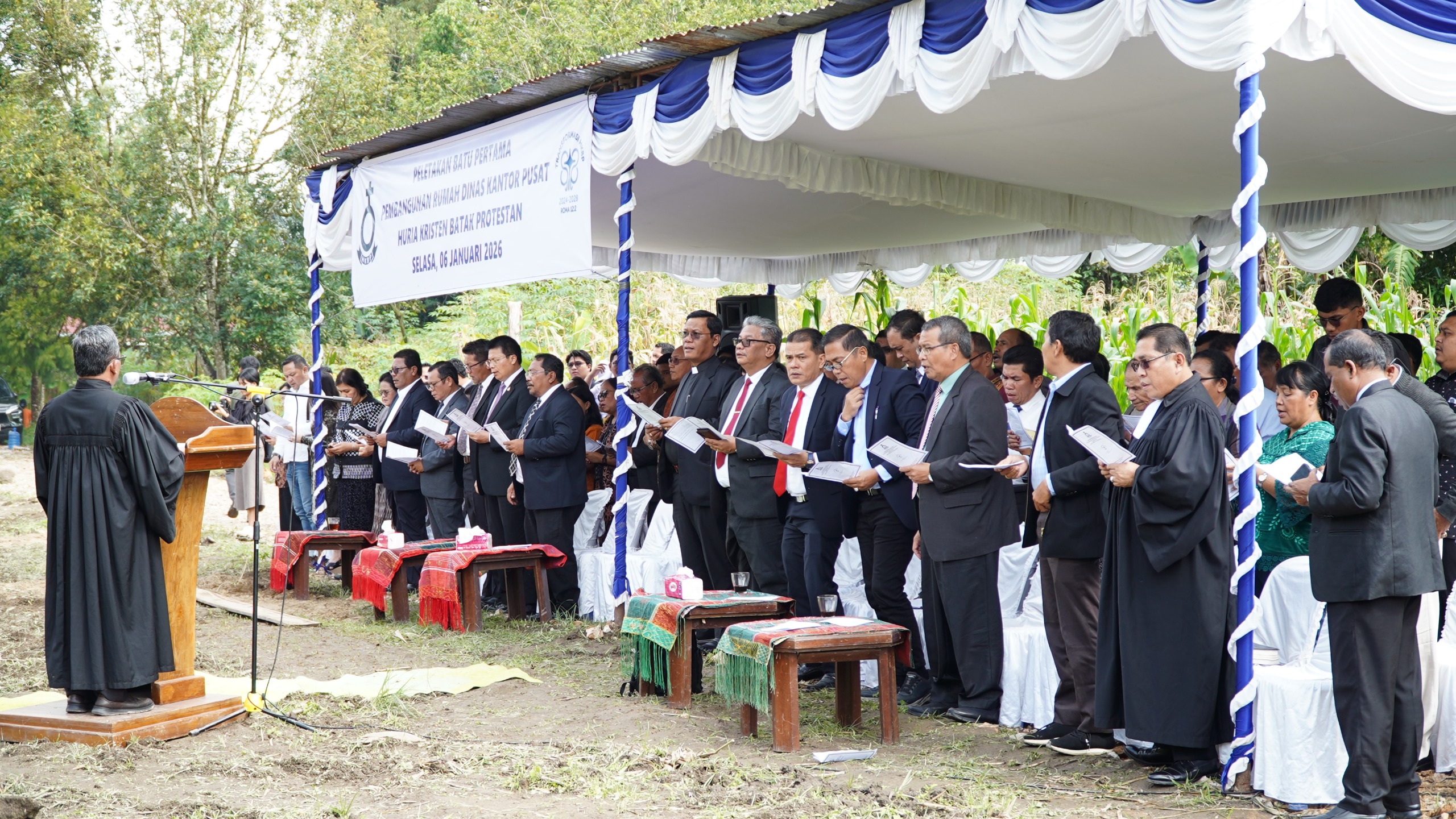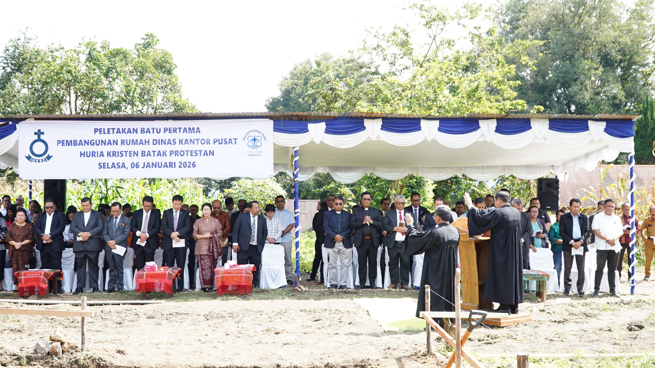 TARUTUNG, 06 Januari 2026 – Mengawali tahun pelayanan 2026 dengan semangat pembaruan, Huria Kristen Batak Protestan (HKBP) melaksanakan ibadah peletakan batu pertama pembangunan dua unit Bagas Huria Kantor Pusat HKBP. Kegiatan yang berlangsung di Jalan Nahum Situmorang, Sigompulon, Tarutung ini dimulai pada pukul 10.00 WIB dan dihadiri oleh jajaran pimpinan serta tokoh penting gereja.